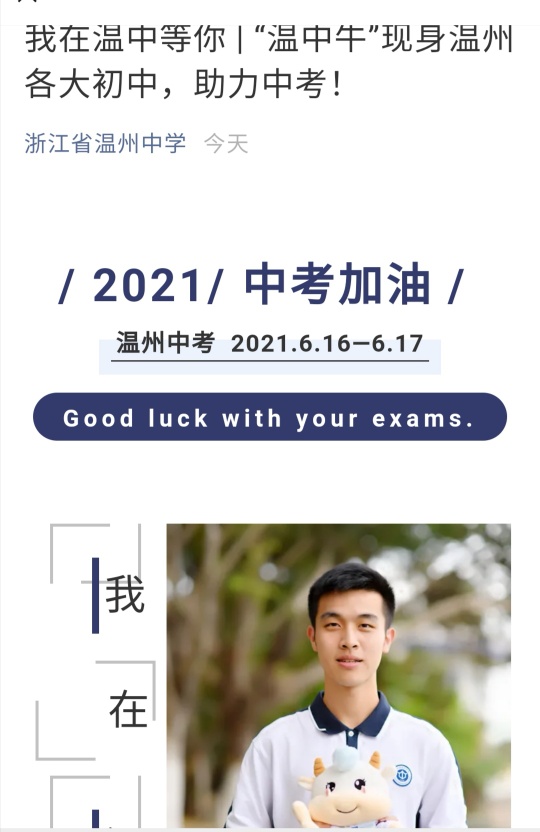 哈哈温州中学也在助力中考学子啦!神体护佑,考的都会,蒙的都对。乐清孩子们加油!必胜。
