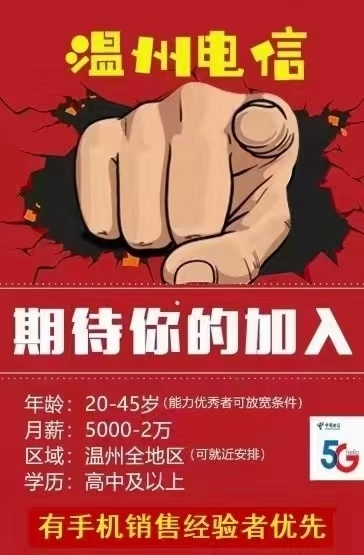 招聘 电信 销售员 (五险一金)