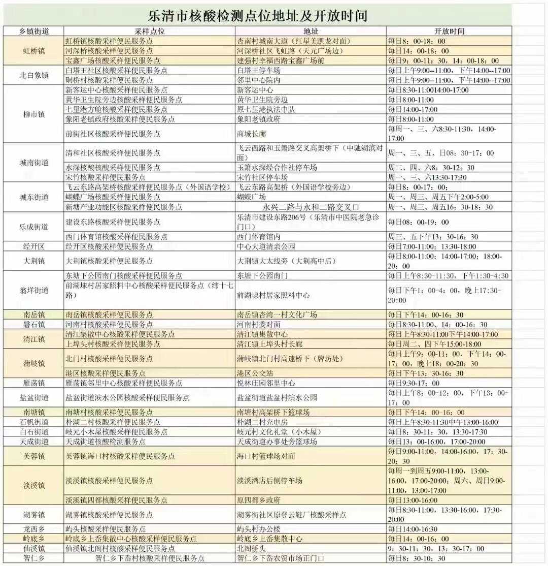 最新核酸检测点如下图。