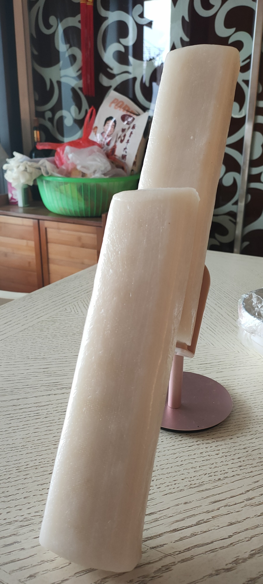 我妈让我来切这个柱子一样的年糕,硬的跟块铁一样切年糕也是我的童年噩梦之一