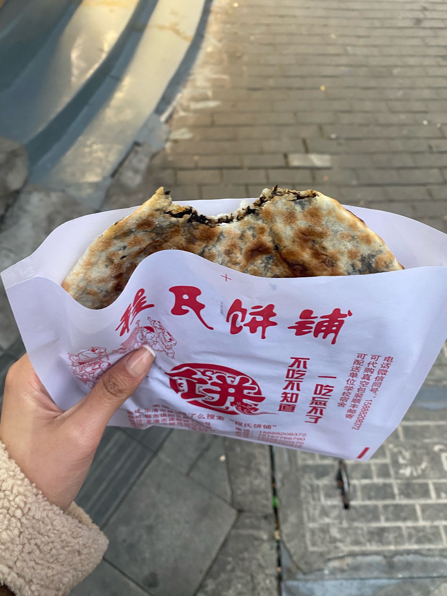 薄的这个烧饼感觉比之前的麦饼还要好吃,那个麦饼会吃蹬乐,这个可以,小一点,刚刚好