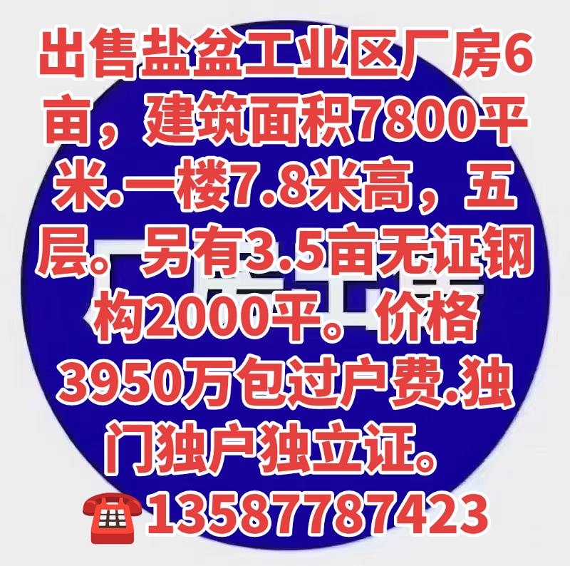出售白象现成厂房,全新刚建好,9200平,五层,位置好,共有证,独门独户。13587787423