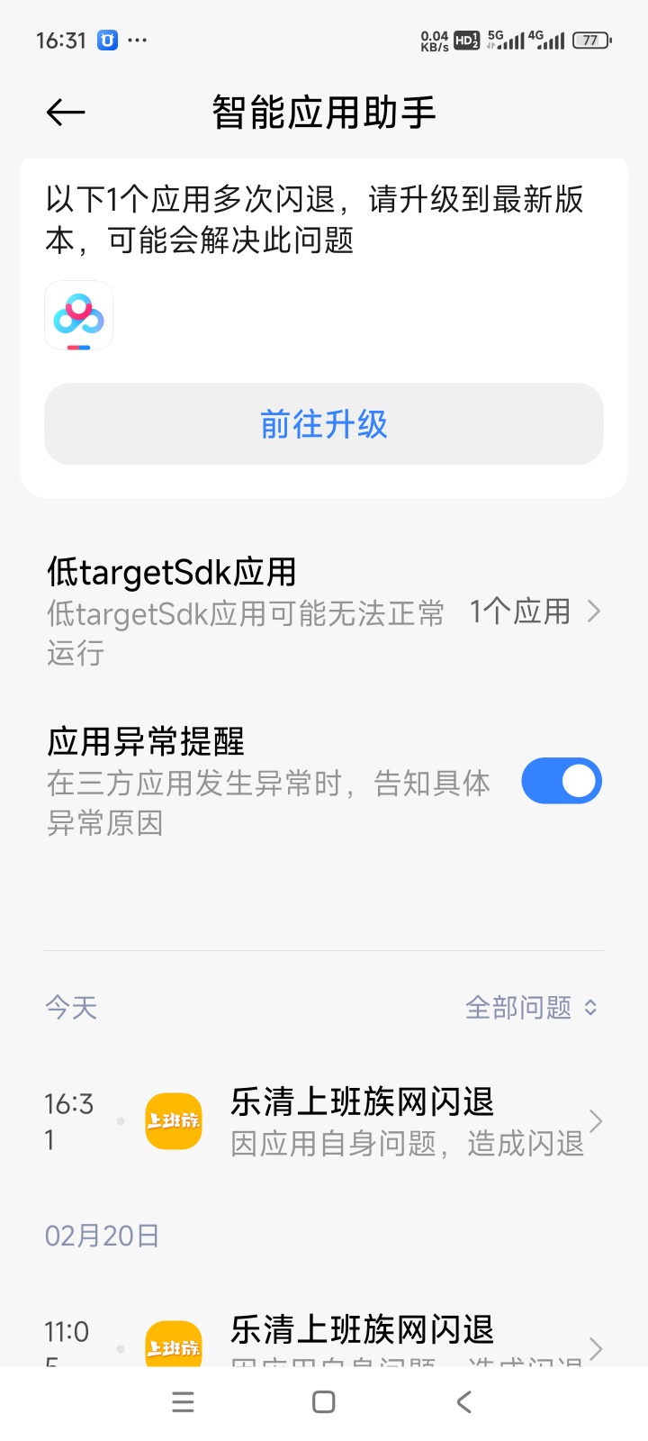 上班族网运行异常,闪退!