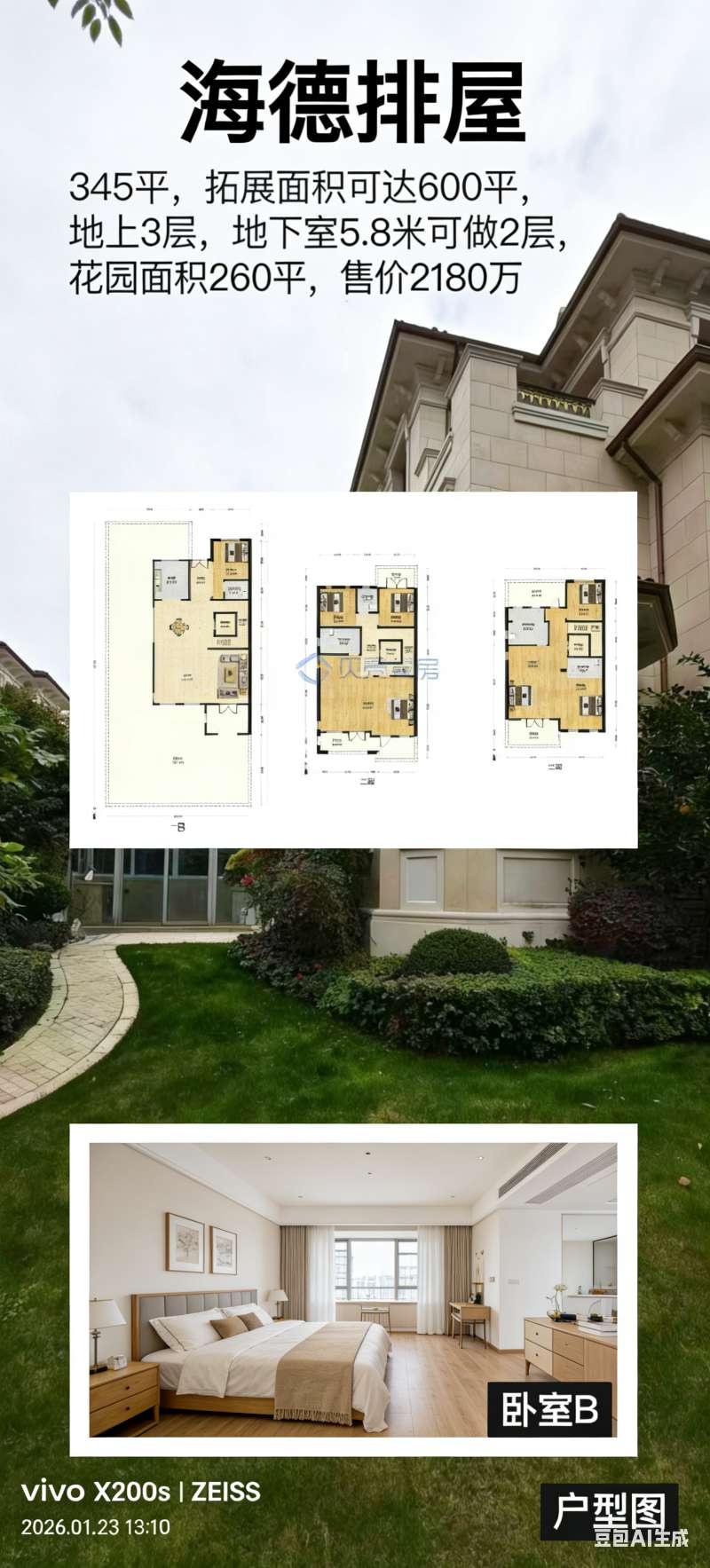 [红包]出售海德排屋345平毛胚房2180万,地面3层,地下可再做2层,实际拓展使用面积可达600多平,地下车库可停放3辆车,证满五,