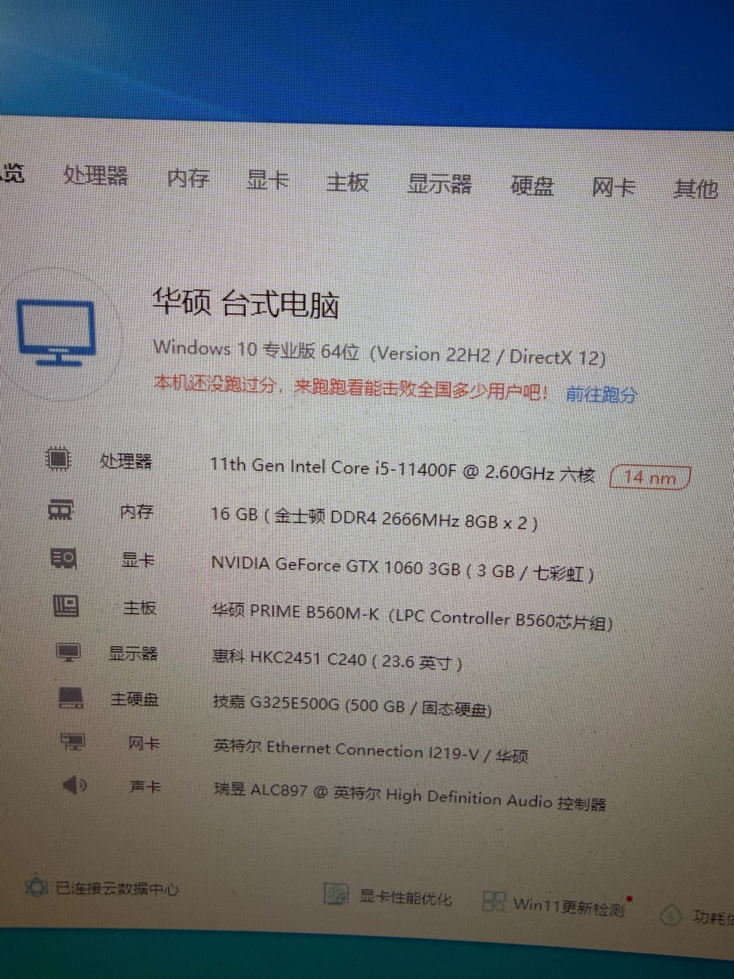 出一台二手台式机:i5-11代16G内存500GM.2固态gtx1060-3G