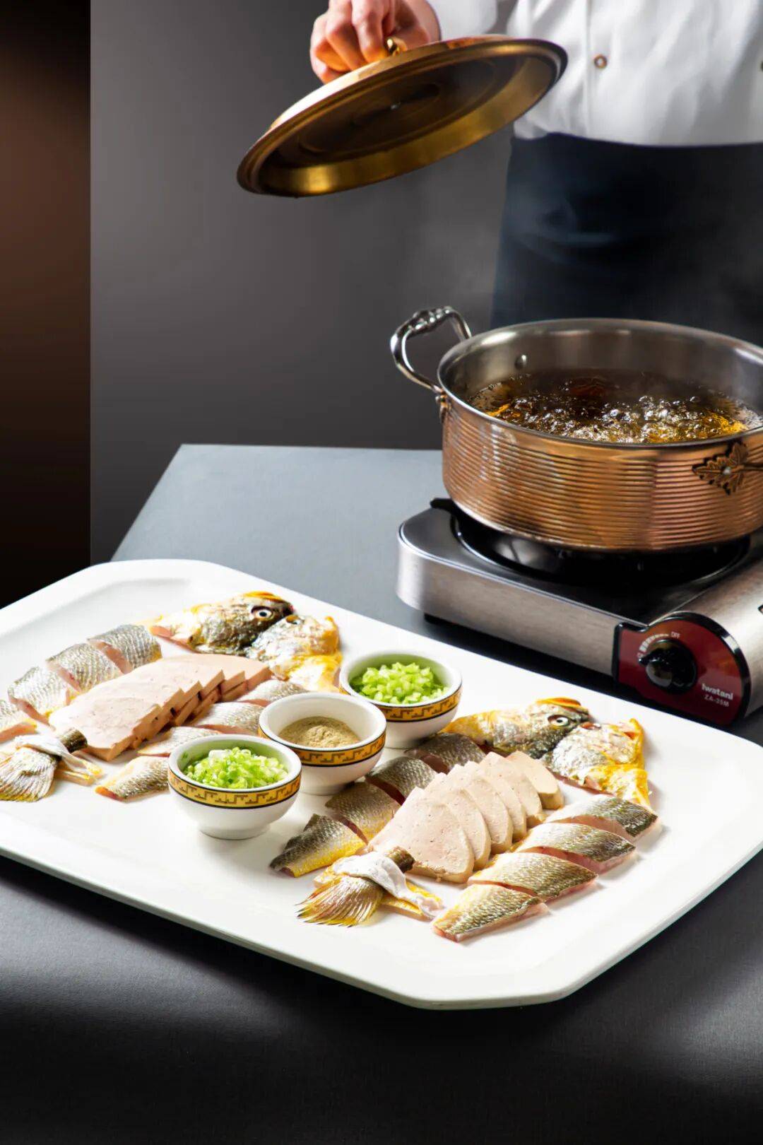 「瓯居海中餐厅」,鸡汤鹅肝浸黄鱼将鸡汤的鲜、鹅肝的润、黄鱼的嫩融于一盅,红烧深海石斑鱼头佛跳墙让石斑鱼头与佛跳墙跨界搭配,各种优质食材,在这里被玩出了新境界。