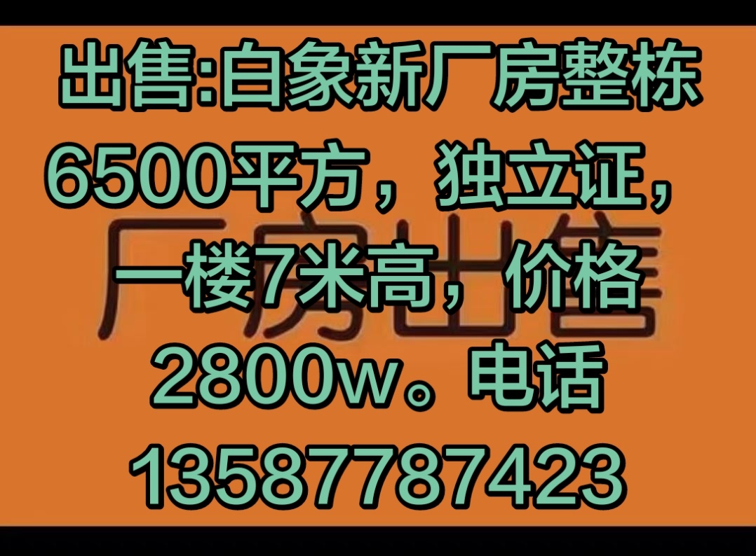 出售/翁垟工业区/土地5.8亩/建筑7000平/证件齐全/独门独院/正常交易/售价2800万/联系电话13587787423