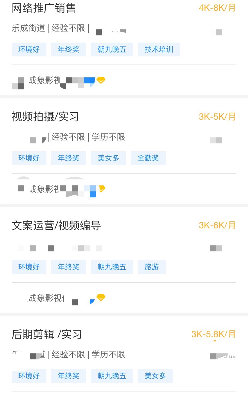 成象我也去面试过过,初创公司可以理解,另外自媒体红利期其实已经过了,现在是砸钱买流量的时代。还有最好去一线城市找这类工作好点。如果走后期方面,剪辑是不够的,AE合成,加一款三维软件是必须的(我用的C4D)目前在一家企业外贸部宣传部门工作,单双休,做产品动画给外国客户看的。如果对MG动画,三维动画感兴趣可以加我一起努力