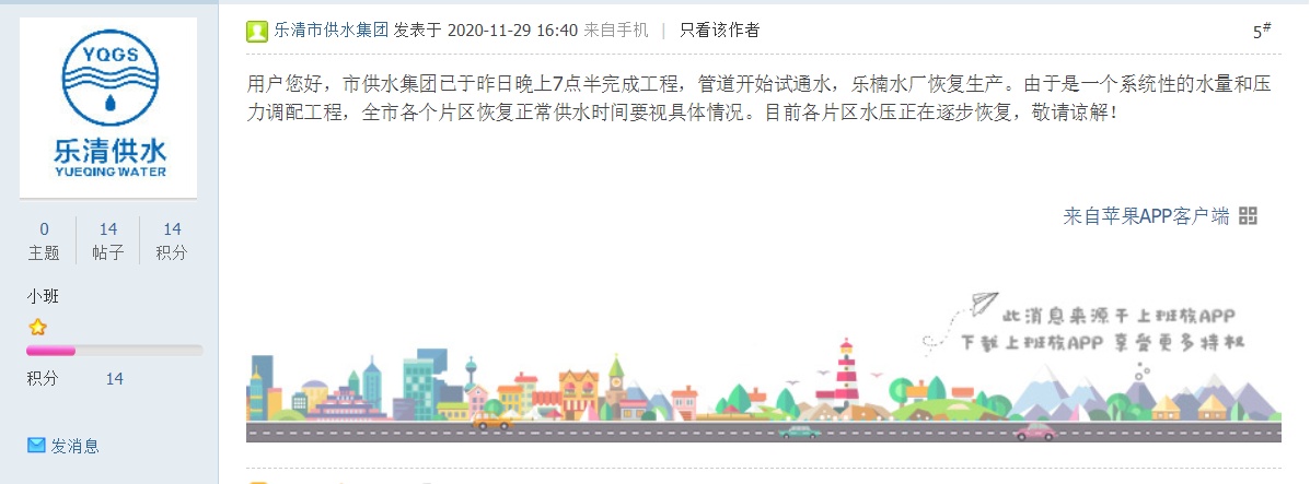 乐清市供水集团 发表于 2020-11-30 11:26