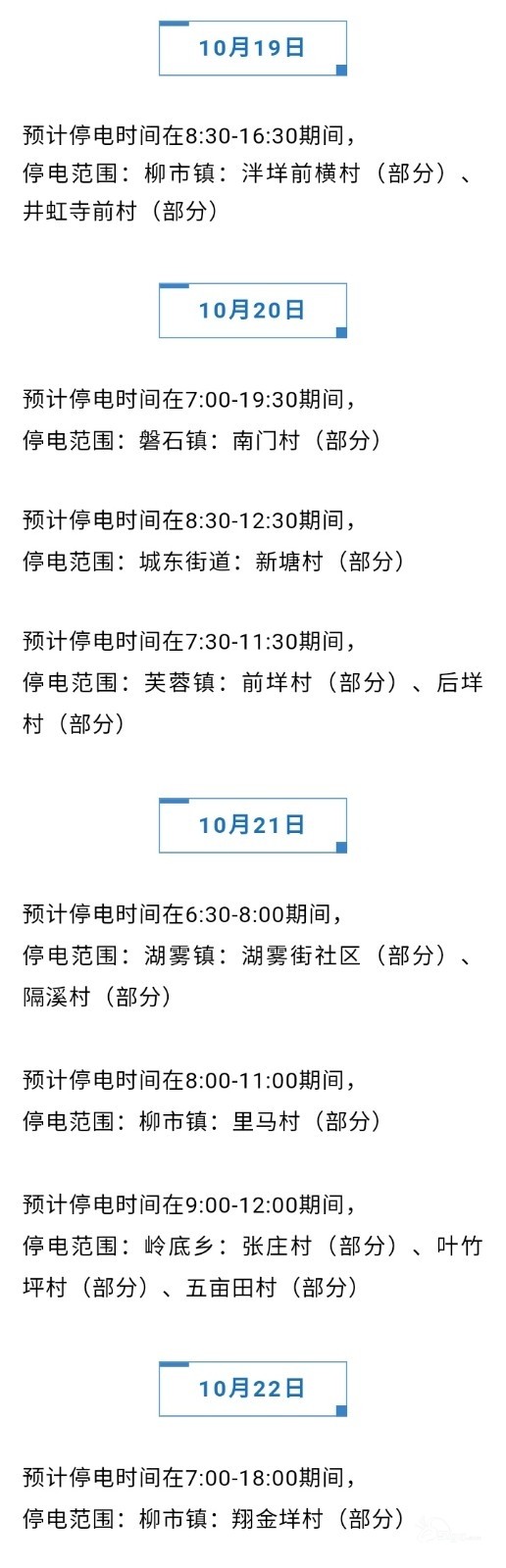 明天开始这些地方要停电了,看看有没有你们家,注意提前准备好电宝呀