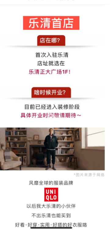 乐清第一家优衣库【官宣】 乐清首家优库落地正大城