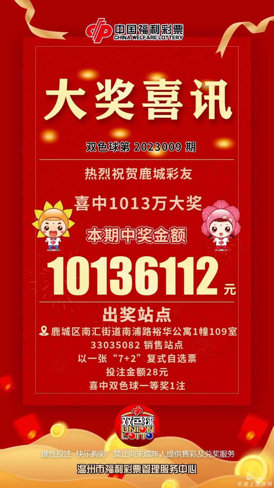1月29日,双色球第2023009期开奖,全国共开出2注一等奖,单注奖金1000万元,我市一购彩者幸运击中其中1注,共获奖金1013万元。 据悉,该中奖者凭借一张“7+2”复式自选票,幸运击中1注一等奖和1注二等奖,加 ...