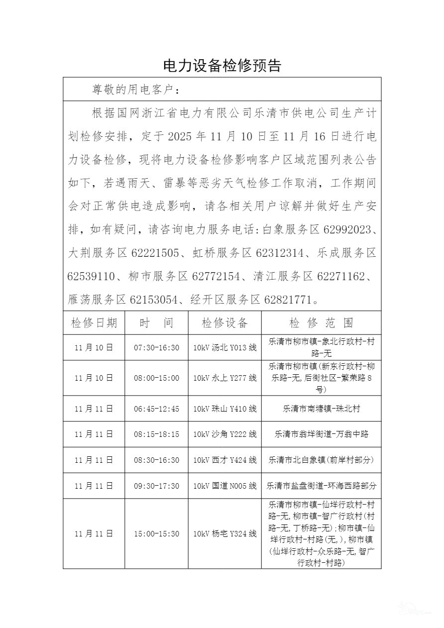乐清这些地方要停电了!