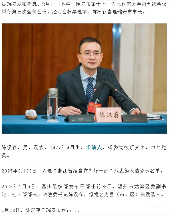 他当选瑞安市长!乐清人